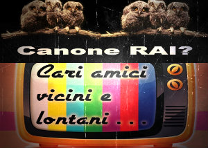 Amici vicini e lontani: è la voce del governo che vi parla. Ascoltate amici vicini e lontani: il canone Rai diminuisce. E poi si paga in bolletta, ormai è deciso. Paghiamo di meno, ma pagheranno tutti. Si parte a gennaio 2015. Si paga anche per le seconde case. Anzi no, per le seconde case no. Il canone in bolletta? No, non se ne fa nulla e poi non diminuisce. Amici, vicini e lontani è la voce del governo che vi parla... la solita voce univoca che vi dice: siamo sempre dalla vostra parte! Non ci credete? Allora siete dei gufi, gufi...