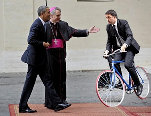 Barak Obama a papa Francesco: “Santità è meraviglioso incontrarla”. Barak Obama a Renzi: “Mi hai impressionato. Oh come mi hai impressionato. Per dirla tutta, giovane, mi fai più impressione di quell’altro che di me disse che ero abbronzato!”.