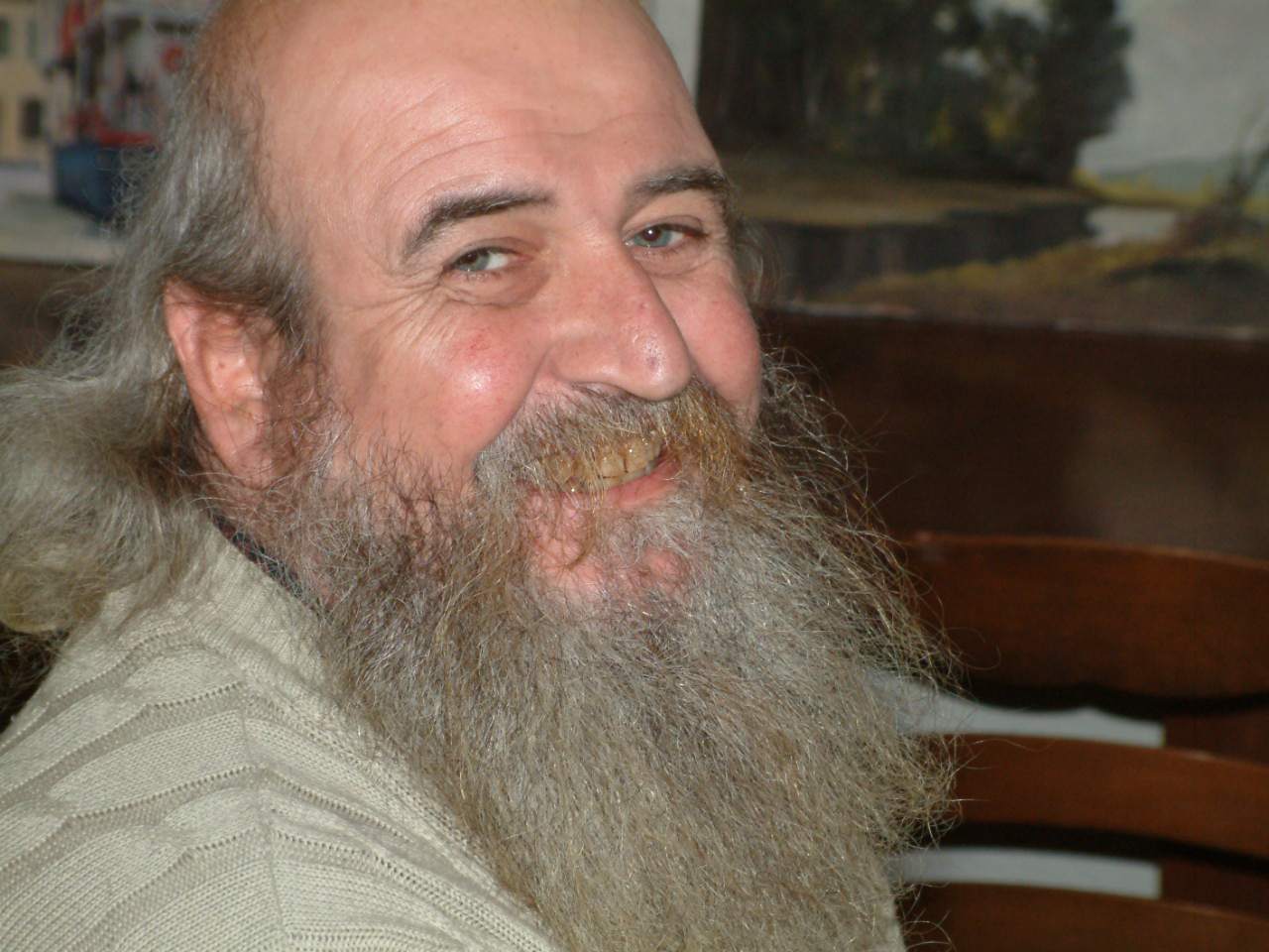 Un paio di foto chiudono l’incontro. Giorgio Bongiovanni è un po’ nervoso. Non può uscire in strada perché piove. Proprio adesso che per Natale in molti sono stati al “Persico” per acquistare qualche suo dipinto. Domani tornerà in strada. Si porterà appresso tela, cavalletto e colori. E la barba ingiallita come le sue dita e uno sguardo beffardo verso il futuro. Via Pusterla e il mercato si metteranno ancora una volta in posa come una modella davanti all’artista. I luoghi sono sempre quelli. Cambia la luce, l’umore dell’artista e l’occhio del pittore on the road.