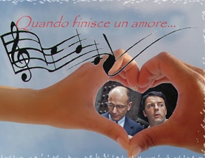Enrico Letta – prima sedotto e poi cacciato - lascia Palazzo Chigi proprio il giorno di san Valentino. Mentre sale al Colle la radio trasmette una vecchia canzone di Riccardo Cocciate: “Quando finisce un amore, così com'e' finito il mio, senza una ragione né un motivo, senza niente...”. Le note della marcia funebre.